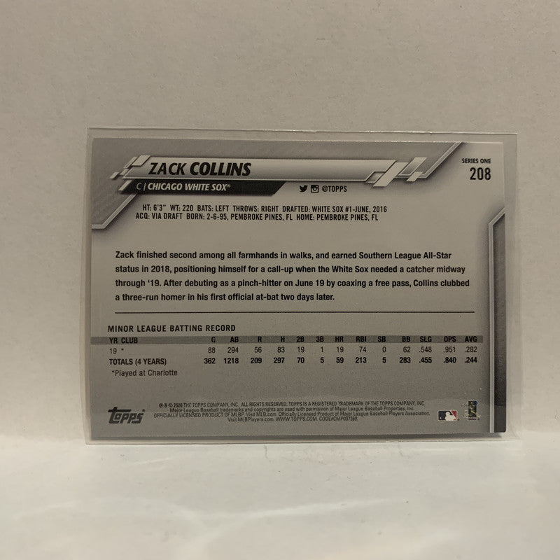 #208 Zack Collins Rookie Chicago White Sox 2020 Topps Series 1 Baseball Card IA