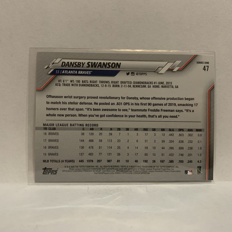 #47 Dansby Swanson Atlanta Braves 2020 Topps Series 1 Baseball Card IA