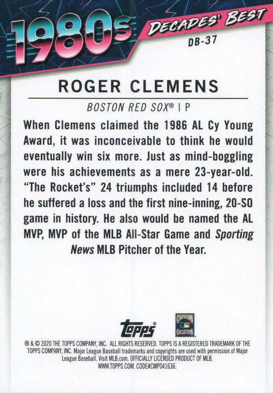 DB-37 Roger Clemans Boston Red Sox 2020 Topps Update Baseball Card