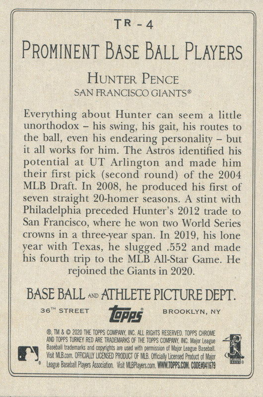 TR-4 Hunter Pence San Francisco Giants 2020 Topps Update Baseball Card