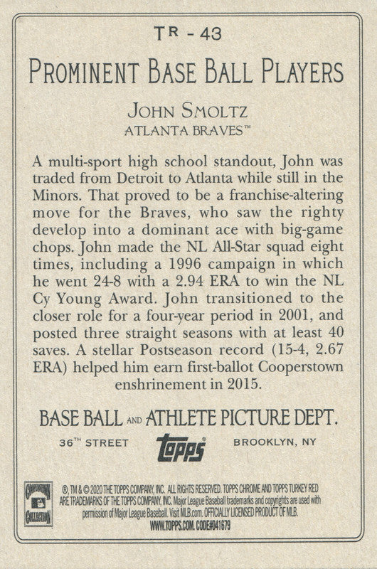 TR-43 John Smoltz Atlanta Braves 2020 Topps Update Baseball Card