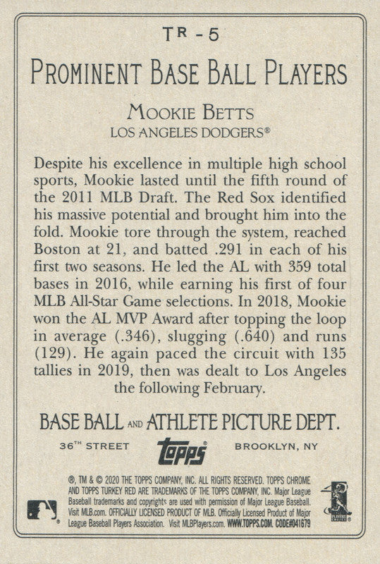 TR-5 Mookie Betts Los Angeles Dodgers 2020 Topps Update Baseball Card
