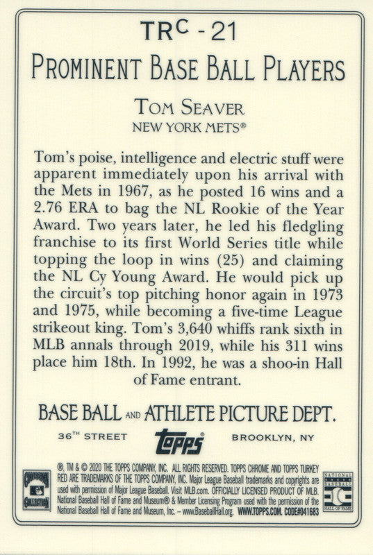 TRC-21 Tom Seaver New York Mets 2020 Topps Update Baseball Card