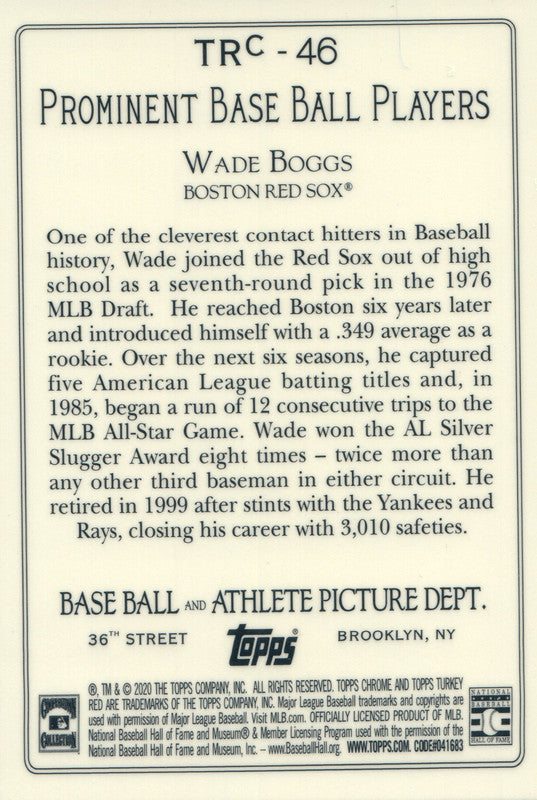 TRC-46 Wade Boggs Boston Red Sox 2020 Topps Update Baseball Card