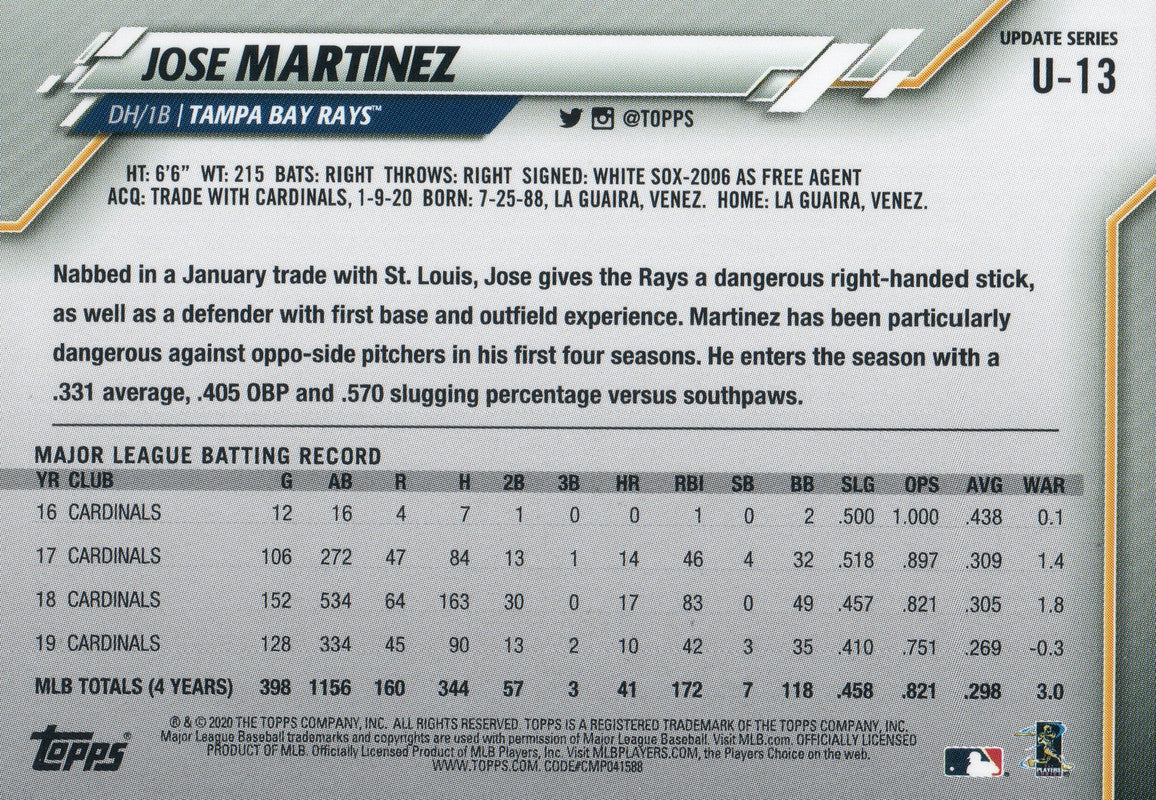 U-13 Jose Martinez Tampa Bay Rays 2020 Topps Update Baseball Card