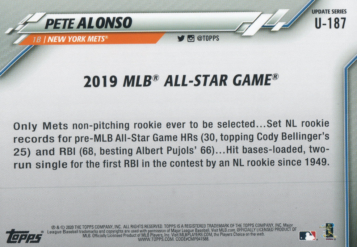 U-187 Pete Alonso 2019 MLB All Star Game New York Mets 2020 Topps Update Baseball Card