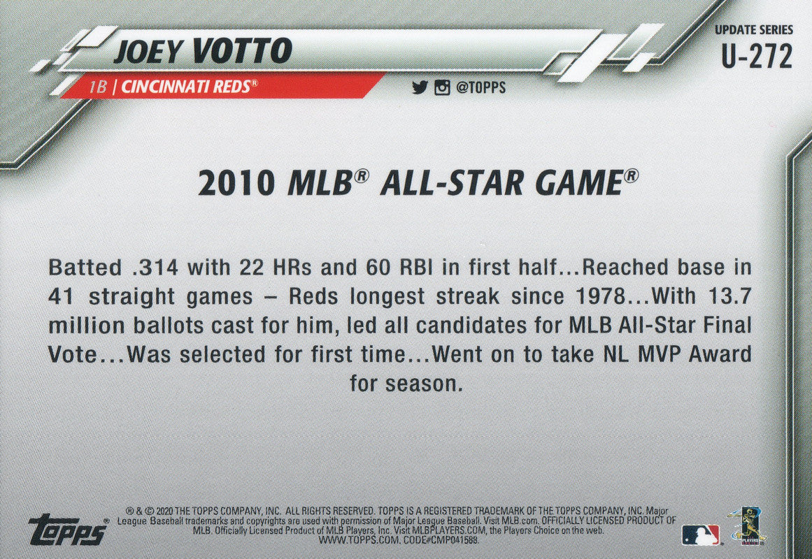 U-272 Joey Votto 2010 MLB All Star Game Cincinnati Reds 2020 Topps Update Baseball Card