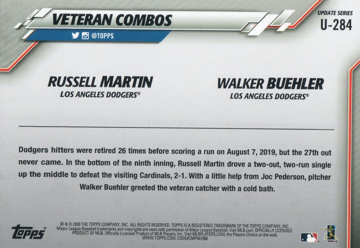 U-284 Russell Martin Walker Buehler Los Angeles Dodgers 2020 Topps Update Baseball Card
