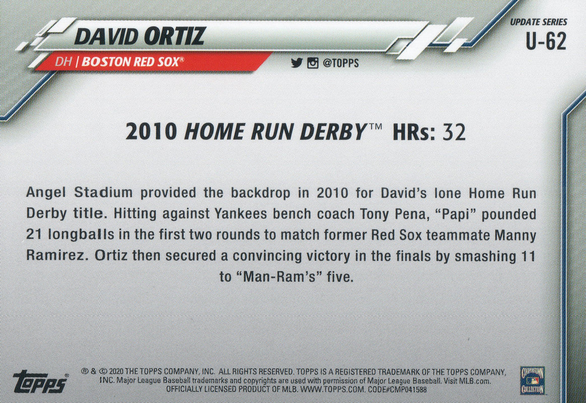 U-62 David Ortiz 2010 Home Run Derby Boston Red Sox 2020 Topps Update Baseball Card