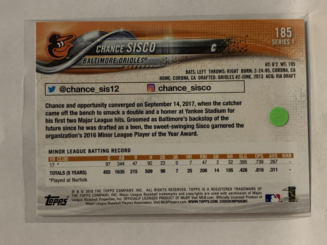 #185 Chance Sisco Rookie Baltimore Orioles 2018 Topps Series One Baseball Card