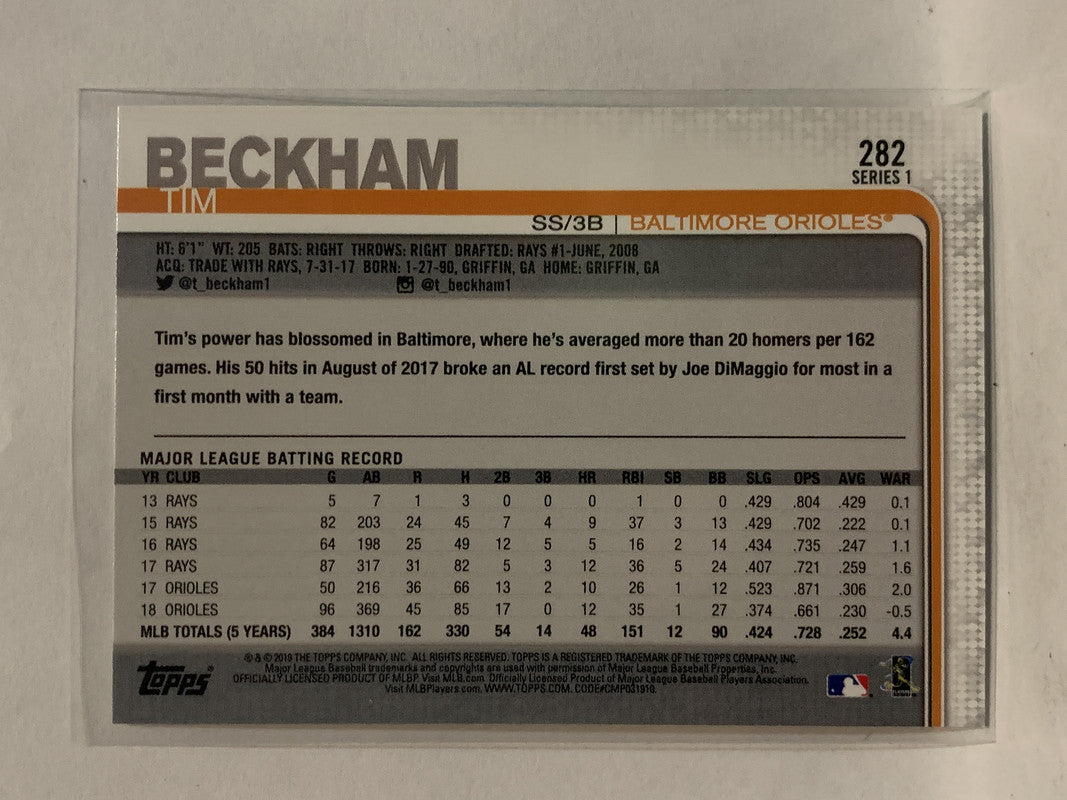 #282 Tim Beckham Baltimore Orioles 2019 Topps Series One Baseball Card