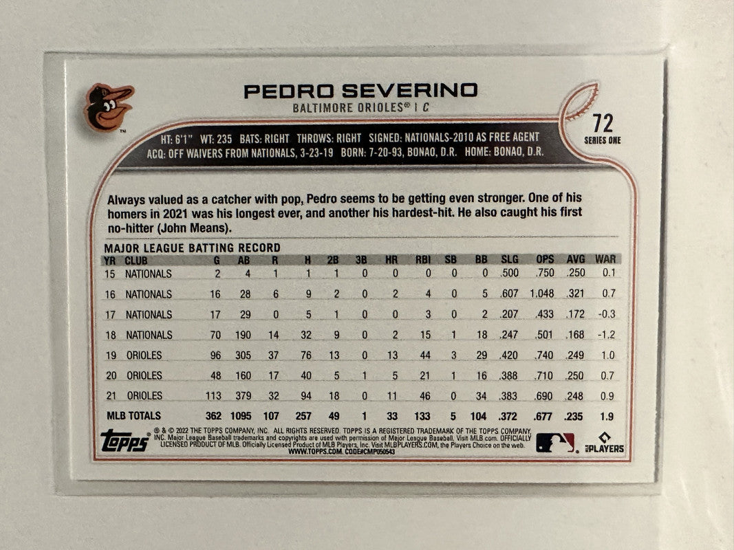 #72 Pedro Severino Baltimore Orioles 2022 Topps Series One Baseball Card