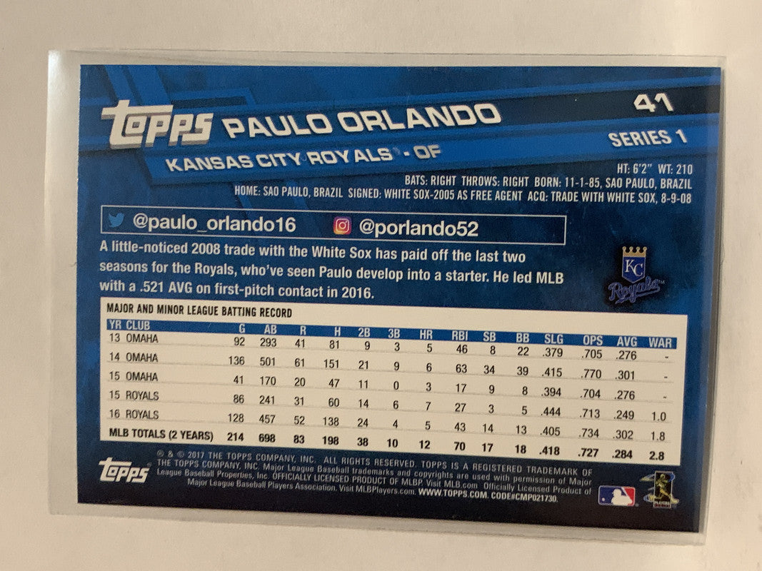 #41 Paulo Orlando Kansas City Royals 2017 Topps Series One Baseball Card