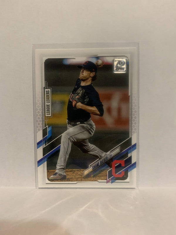 #105 Shane Bieber League Leaders Cleveland Indians 2021 Topps Series One Baseball Card
