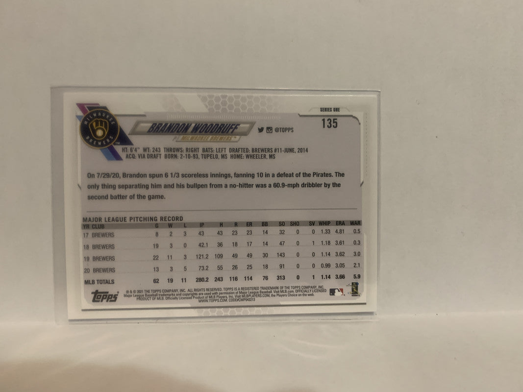 #135 Brandon Woodruff Milwaukee Brewers 2021 Topps Series One Baseball Card
