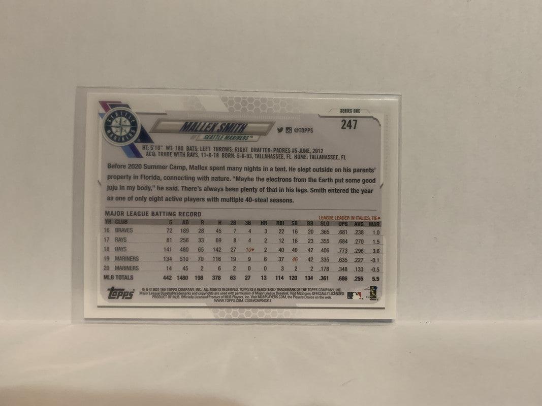 #247 Mallex Smith Seattle Mariners 2021 Topps Series One Baseball Card