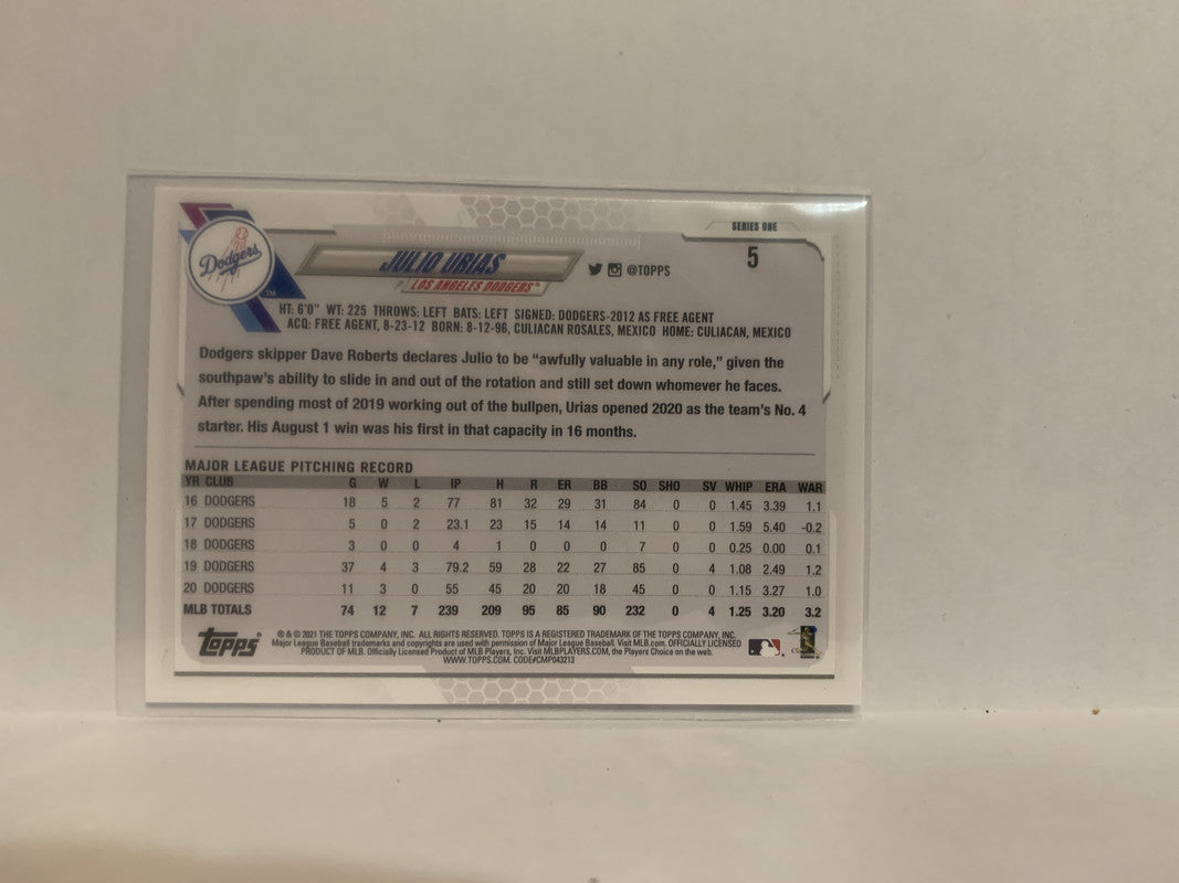 #5 Julio Urias Los Angeles Dodgers 2021 Topps Series One Baseball Card
