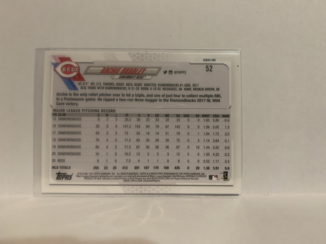 #52 Archie Bradley Cincinnati Reds 2021 Topps Series One Baseball Card