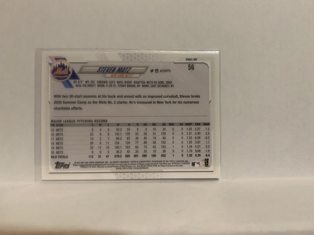 #56 Steven Matz New York Mets 2021 Topps Series One Baseball Card