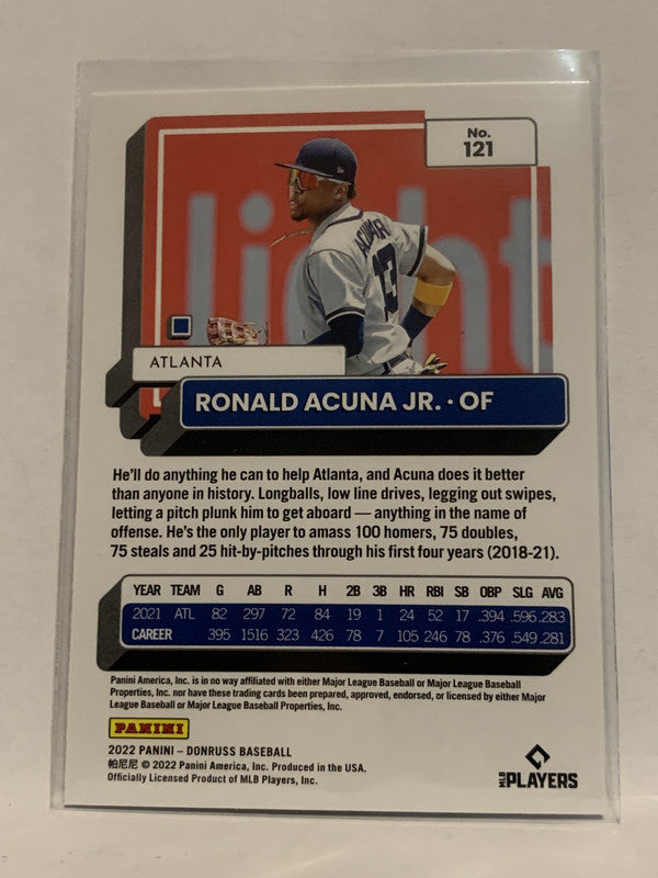 #121 Ronald Acuna Jr Atlanta Braves 2022 Donruss Baseball Card MLB
