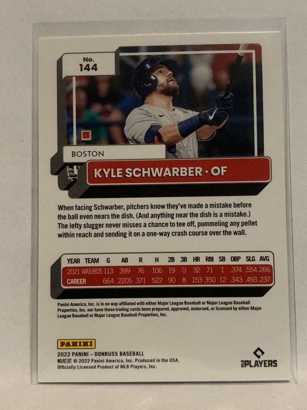 #144 Kyle Schwarber Boston Red Sox 2022 Donruss Baseball Card MLB