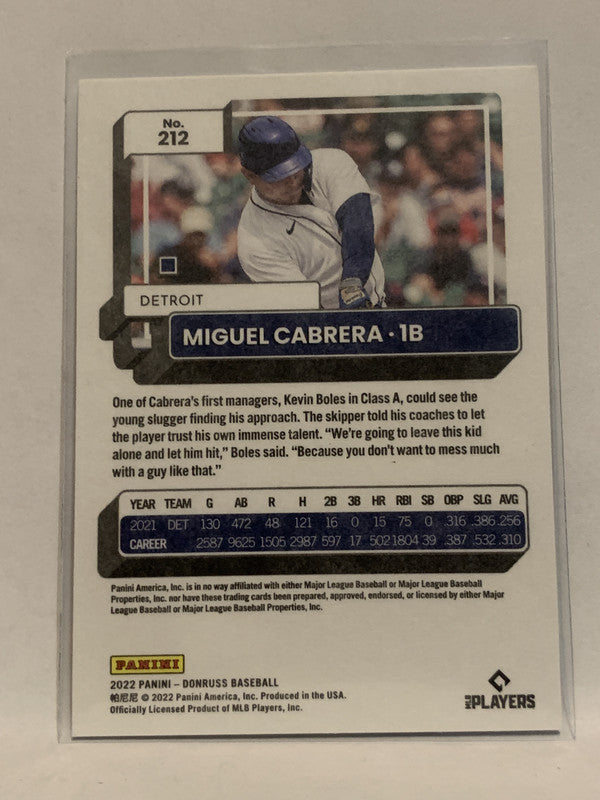#212 Miguel Cabrera Independence Day Detroit Tigers 2022 Donruss Baseball Card MLB