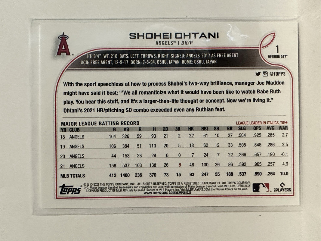 #1 Shohei Ohtani Los Angeles Angels 2022 Topps Opening Day Baseball Card