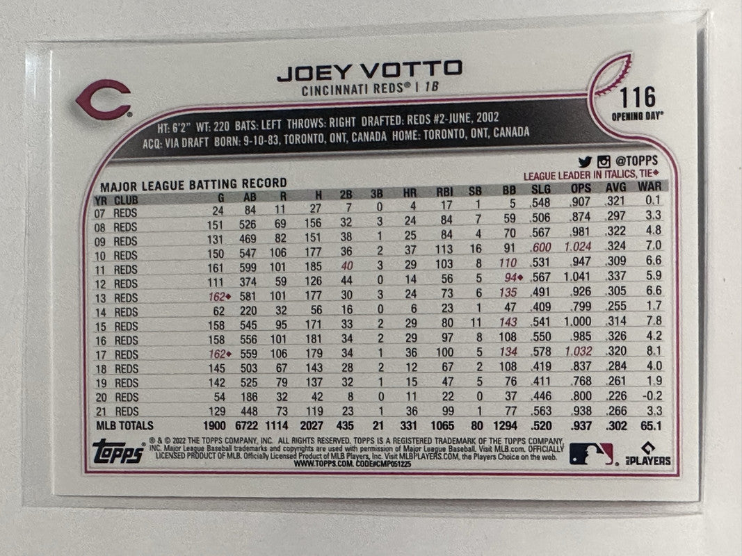 #116 Joey Votto Cincinnati Reds 2022 Topps Opening Day Baseball Card