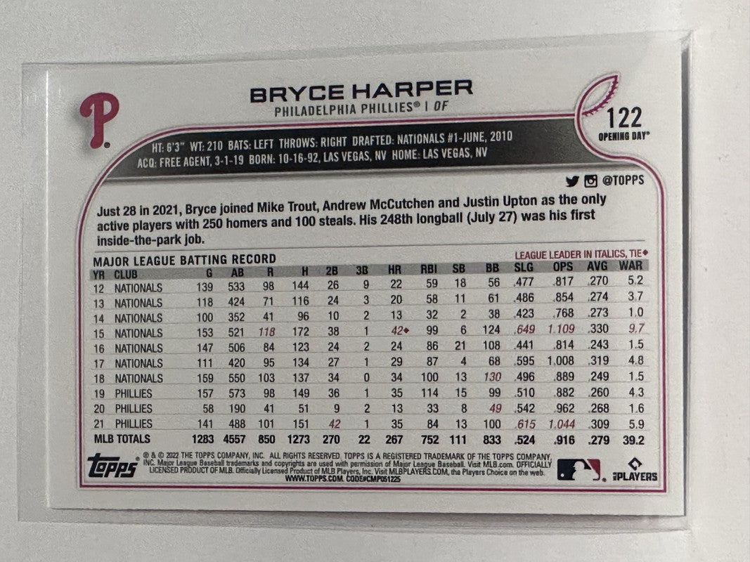 #122 Bryce Harper Philadelphia Phillies 2022 Topps Opening Day Baseball Card