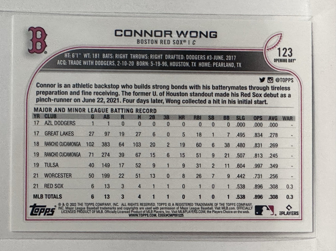 #123 Connor Wong Rookie Boston Red Sox 2022 Topps Opening Day Baseball Card
