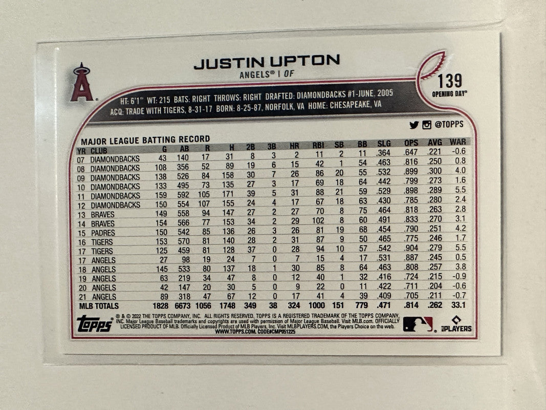 #139 Justin Upton Los Angeles Angels 2022 Topps Opening Day Baseball Card