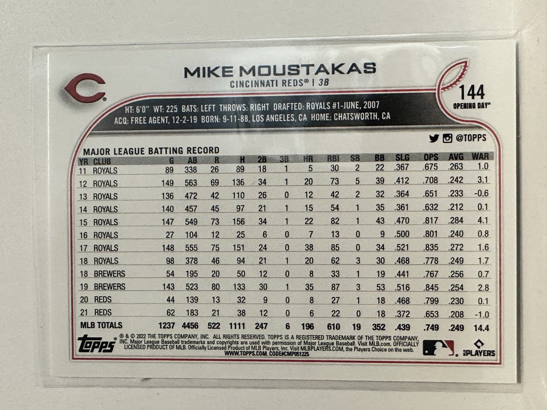 #144 Mike Moustakas Cincinnati Reds 2022 Topps Opening Day Baseball Card