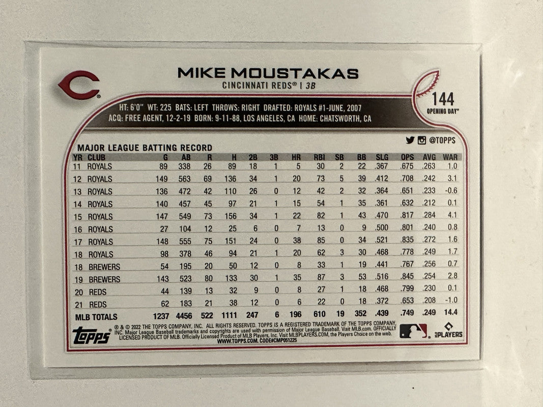 #144 Mike Moustakas Cincinnati Reds 2022 Topps Opening Day Baseball Card