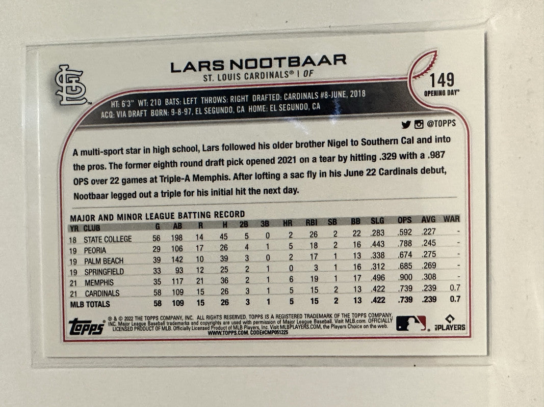 #149 Lars Nootbaar Rookie St Louis Cardinals 2022 Topps Opening Day Baseball Card