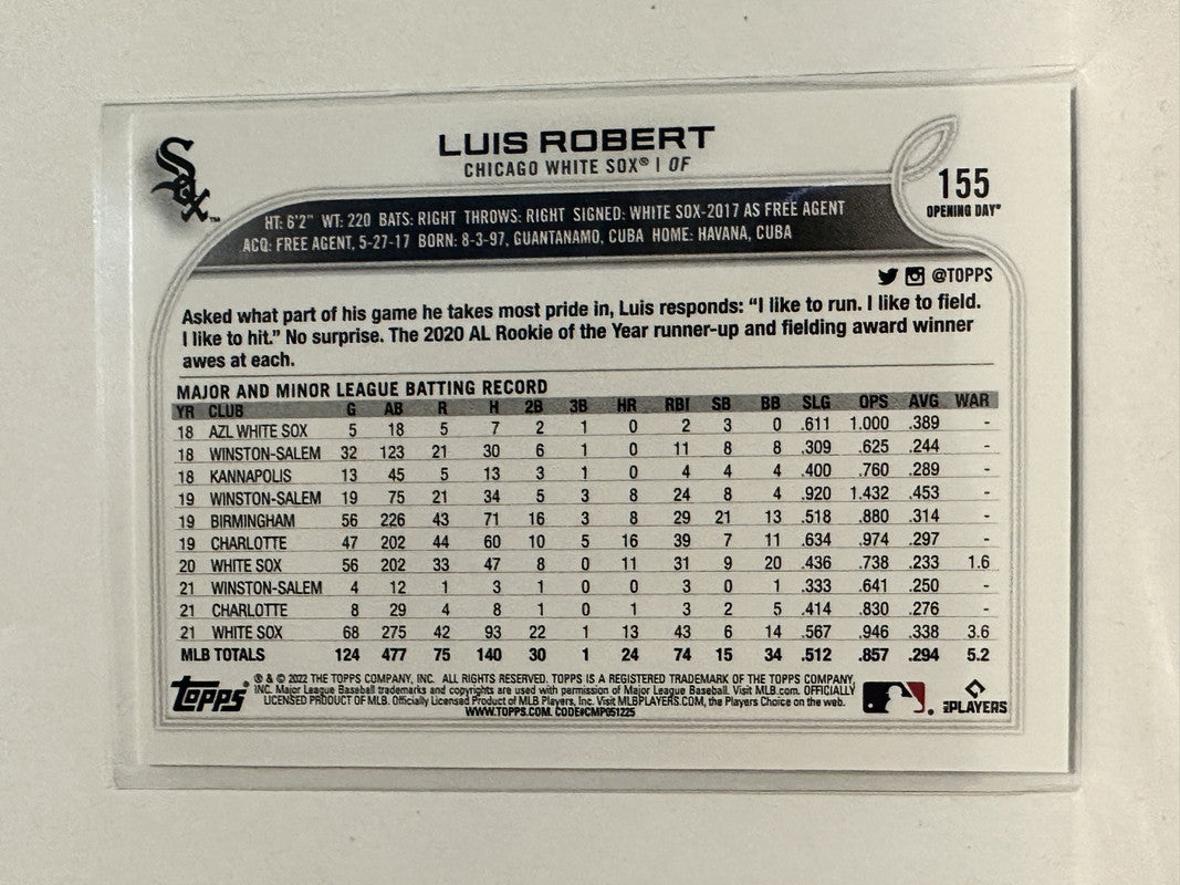 #155 Luis Robert Chicago White Sox 2022 Topps Opening Day Baseball Card