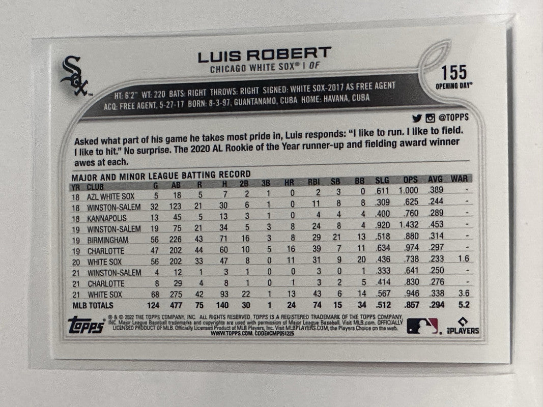 #155 Luis Robert Chicago White Sox 2022 Topps Opening Day Baseball Card
