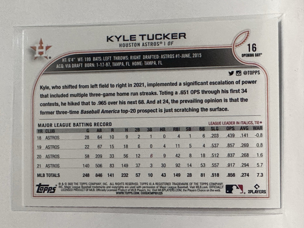 #16 Kyle Tucker Houston Astros 2022 Topps Opening Day Baseball Card