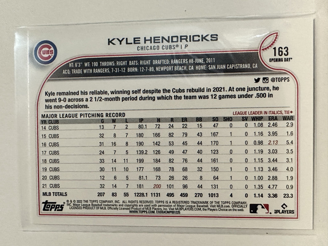 #163 Kyle Hendricks Chicago Cubs 2022 Topps Opening Day Baseball Card