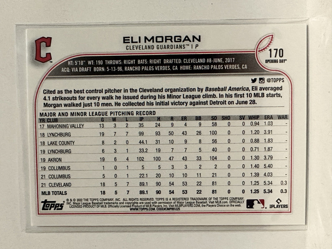 #170 Eli Morgan Rookie Cleveland Guardians 2022 Topps Opening Day Baseball Card