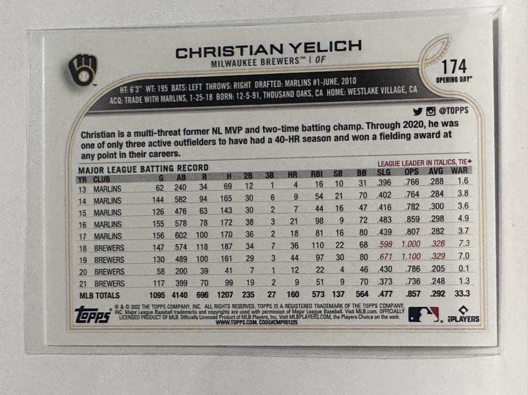 #174 Christian Yelich Milwaukee Brewers 2022 Topps Opening Day Baseball Card