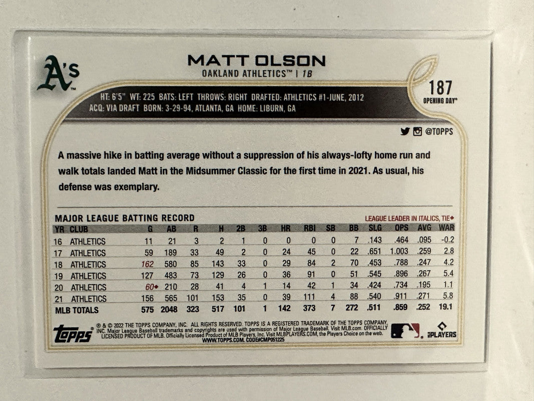 #187 Matt Olson Oakland Athletics 2022 Topps Opening Day Baseball Card