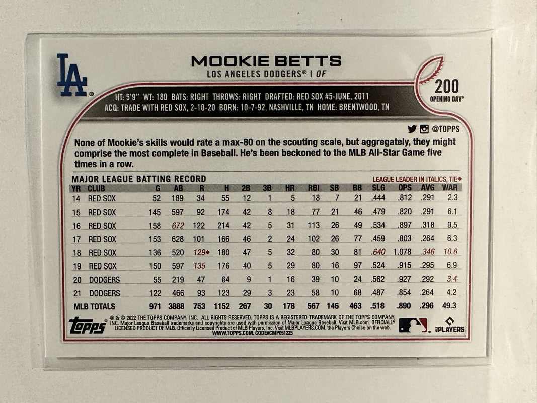 #200 Mookie Betts Los Angeles Dodgers 2022 Topps Opening Day Baseball Card