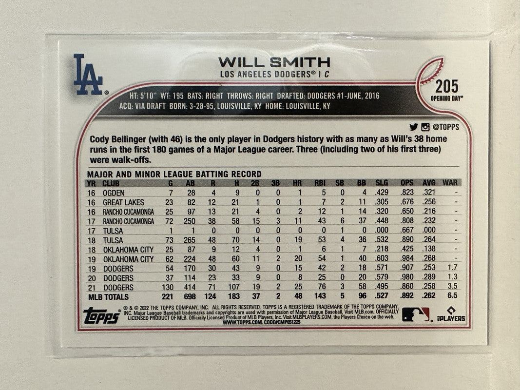 #205 Will Smith Los Angeles Dodgers 2022 Topps Opening Day Baseball Card
