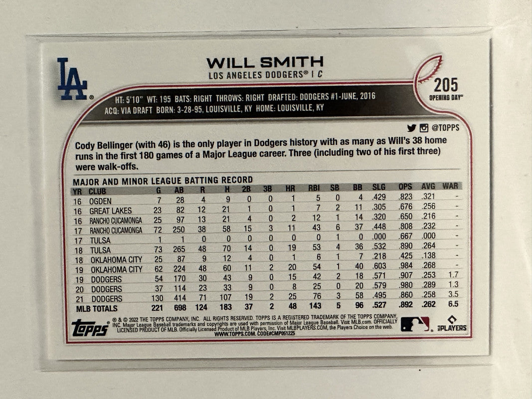 #205 Will Smith Los Angeles Dodgers 2022 Topps Opening Day Baseball Card