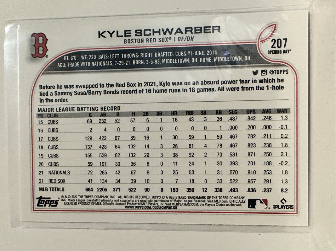 #207 Kyle Schwarber Boston Red Sox 2022 Topps Opening Day Baseball Card