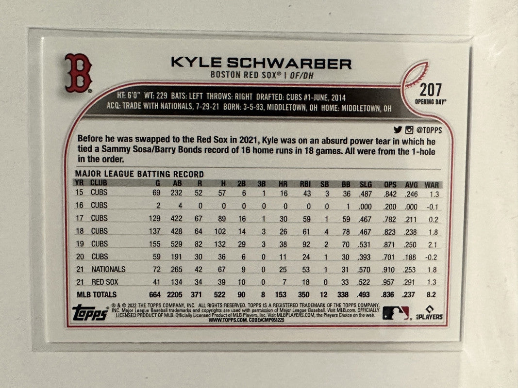 #207 Kyle Schwarber Boston Red Sox 2022 Topps Opening Day Baseball Card