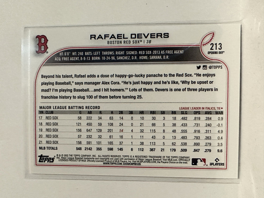 #213 Rafael Devers Boston Red Sox 2022 Topps Opening Day Baseball Card