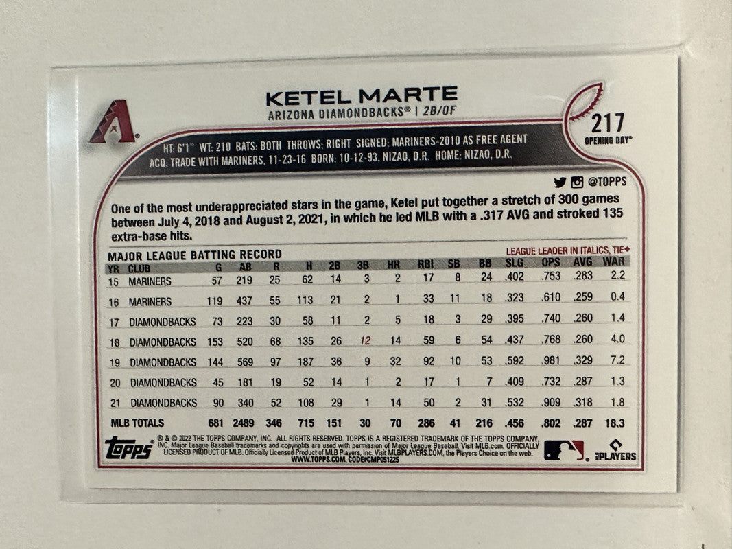 #217 Ketel Marte Arizona Diamondbacks 2022 Topps Opening Day Baseball Card