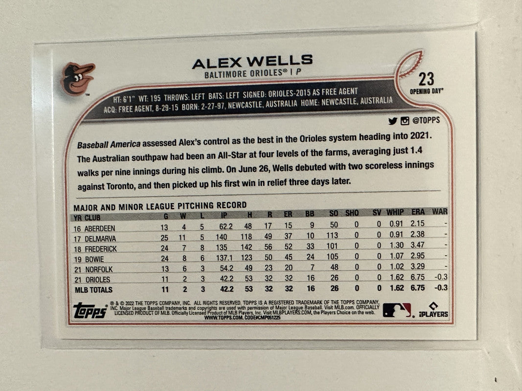 #23 Alex Wells Rookie Baltimore Orioles 2022 Topps Opening Day Baseball Card