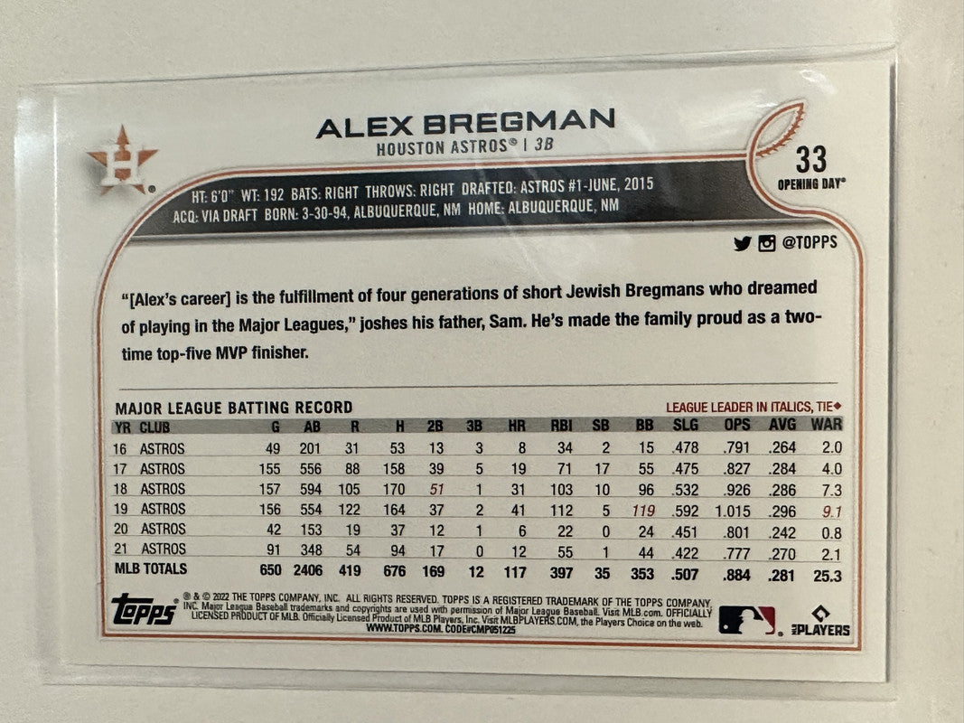 #33 Alex Bregman Houston Astros 2022 Topps Opening Day Baseball Card